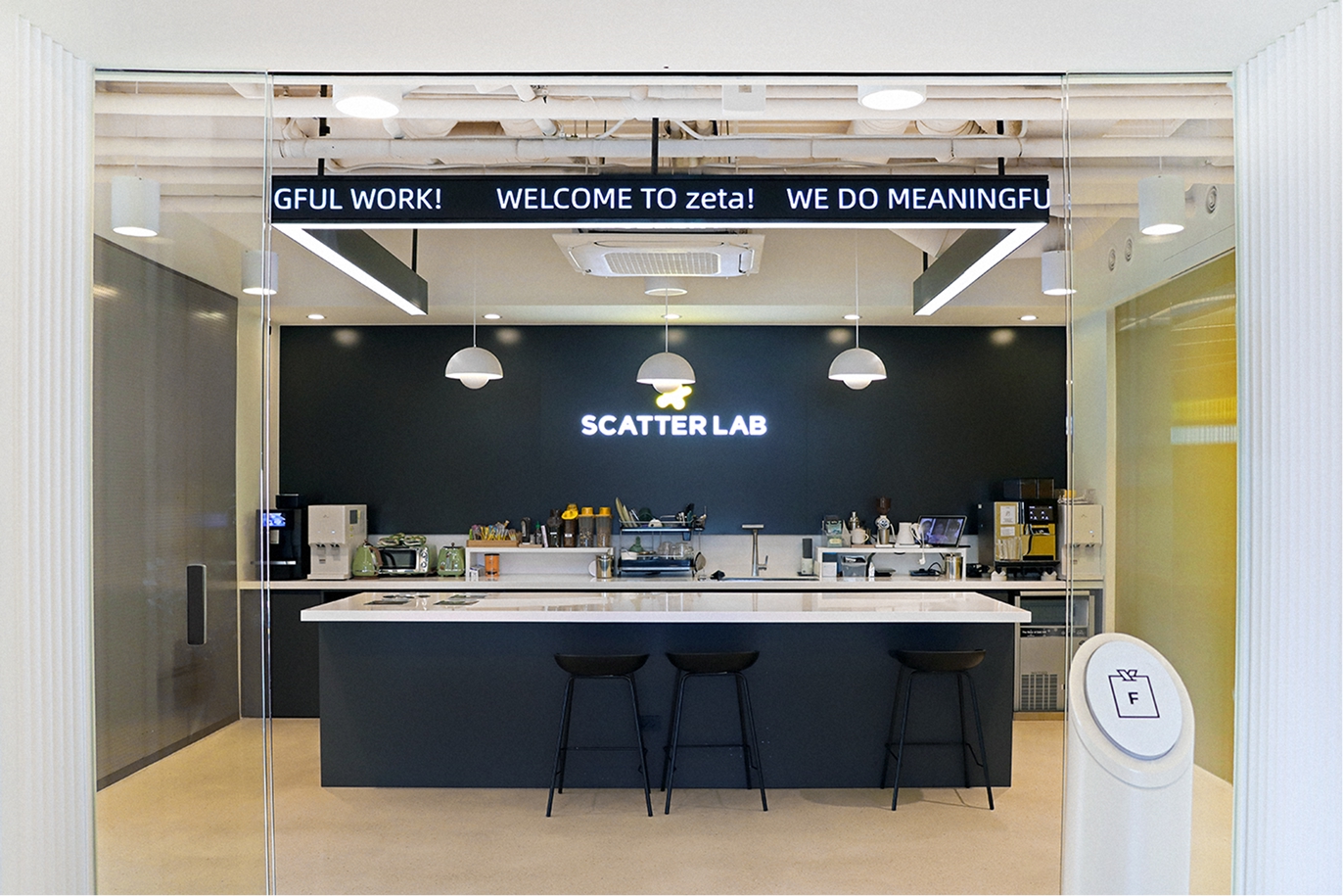 우드 톤의 라운지는 원색의 패브릭 소품을 더하여 캐주얼하고 자유로운 분위기로 연출하였습니다. 캔틴은 타일과 팬던트 조명, 냉장고에 포인트 컬러를 적용하여 라운지의 생동감을 그대로 가져왔습니다.